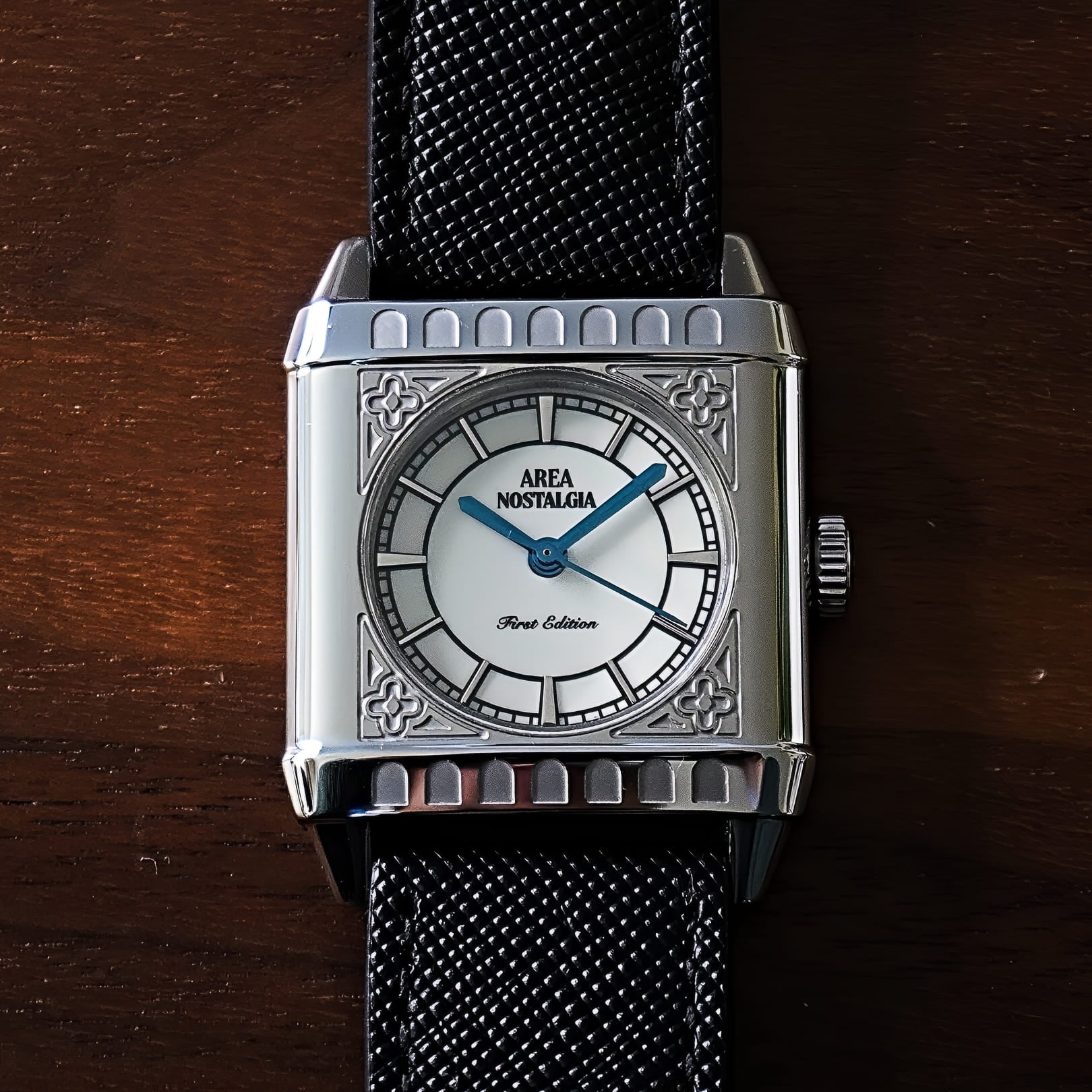 The Clocktower has a unique case design with flowers, diamonds, and arrow tips etched into each corner of the case. Pillars line the top and bottom of the case featuring etched arches for that authentic Gothic look. And a signed crown? Of course. As Area Nostalgia doesn't have an icon logo we've taken the flower from the case detail and etched it onto the crown - linking the case and crown together.